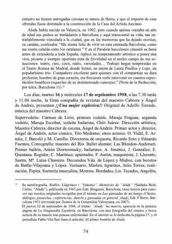 Alady había nacido en Valencia, en 1902, pero cuando apenas contaba un año de edad sus padres se trasladaron a Barcelona y aquí transcurrió su vida, tan en- trañablemente vinculada a la ciudad, que en las memorias que ha dejado escritas, en catalán, confesaba: “Me siento felíz de vivir en esta estimada Barcelona, como me siento catalán entre los catalanes.” Y en el Paralelo barcelonés cimentó su fama antes de extenderla a toda España. Aplicó su temperamento artístico a poner una viva, picante y siempre oportuna nota de frivolidad en el ancho campo de sus ac- tuaciones: teatro, cine, circo, radio, variedades... Trabajó largas temporadas en el Teatro Romea de Madrid, donde formó, en unión de Laura Pinillos y Lepe, un popularísimo trío. Compañero excelente para quienes con él compartían su dura profesión; hombre de gran corazón, era frecuente verle intervenir en cuantos espec- táculos benéficos requerían de su desinteresado concurso.” (Nota de la Redacción, por telex, Barcelona 11).26