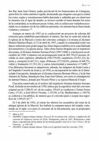 convento de religiosas clarisas de Elche, Presupuesto, junio de 1947. Referencias a estas obras y reproducción de los planos de las mismas pueden verse en G. JaéN I uRBáN, De les Clarisses..., p. 169-194.