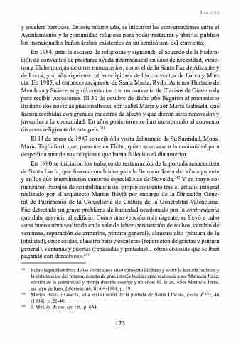 241 Sobre la problemática de las vocaciones en el convento ilicitano y sobre la historia reciente y la vida interior del mismo, resulta de gran interés la entrevista realizada a sor Manuela Jerez, vicaria de la comunidad y monja durante sesenta y un años: G. IRles, «Sor Manuela Jerez, un rayo de luz», Información, 01-04-1984, p. 19.