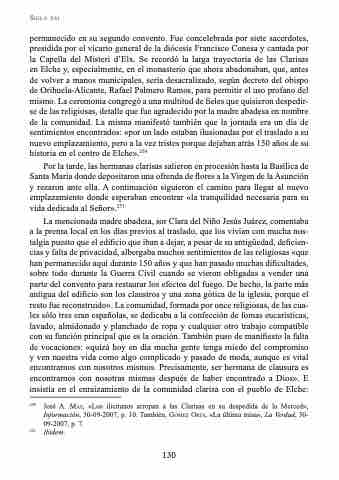 250 José A. Mas, «Los ilicitanos arropan a las Clarisas en su despedida de la Merced», Información, 30-09-2007, p. 10. También, góMez oRts, «La última misa», La Verdad, 30- 09-2007, p. 7.