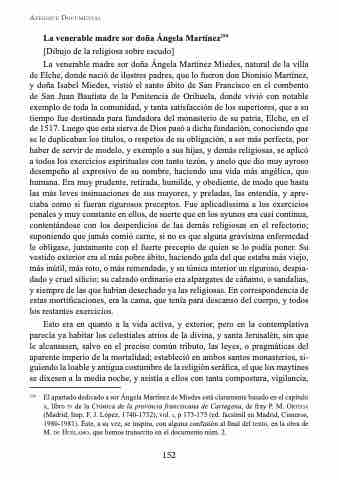 254 El apartado dedicado a sor Ángela Martínez de Miedes está claramente basado en el capítulo x, libro Iv de la Crónica de la provincia franciscana de Cartagena, de fray P. M. oRtega (Madrid, Imp. F. J. López, 1740-1752), vol. I, p 173-175 (ed. facsímil en Madrid, Cisneros, 1980-1981). Éste, a su vez, se inspira, con alguna confusión al final del texto, en la obra de M. de huélaMo, que hemos transcrito en el documento núm. 2.