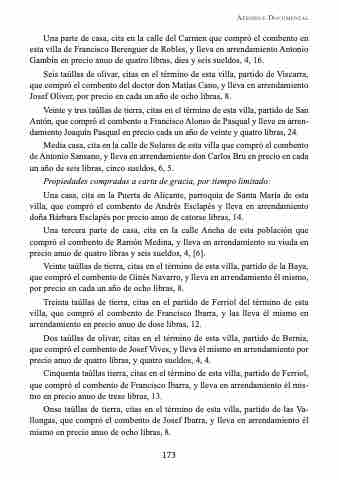 Cinquenta taúllas tierra, citas en el término de esta villa, partido de Ferriol, que compró el combento de Francisco Ibarra, y lleva en arrendamiento él mis- mo en precio anuo de trese libras, 13.
