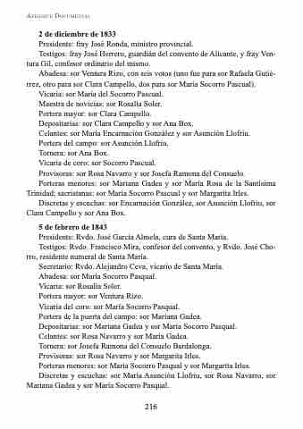 Abadesa: sor Ventura Rizo, con seis votos (uno fue para sor Rafaela Gutié- rrez, otro para sor Clara Campello, dos para sor María Socorro Pascual).