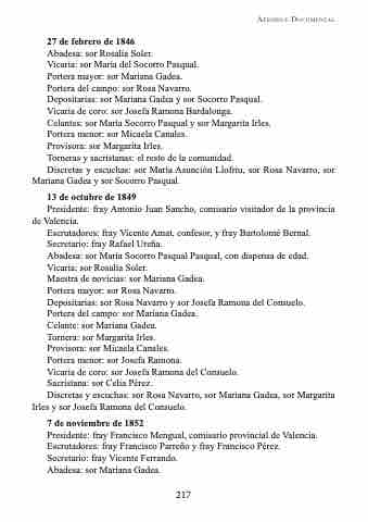 Abadesa: sor María Socorro Pasqual Pasqual, con dispensa de edad. Vicaria: sor Rosalía Soler.