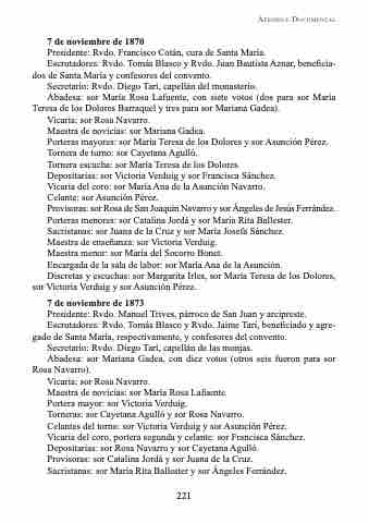 Celantes del torno: sor Victoria Verduig y sor Asunción Pérez. Vicaria del coro, portera segunda y celante: sor Francisca Sánchez. Depositarias: sor Rosa Navarro y sor Cayetana Agulló.