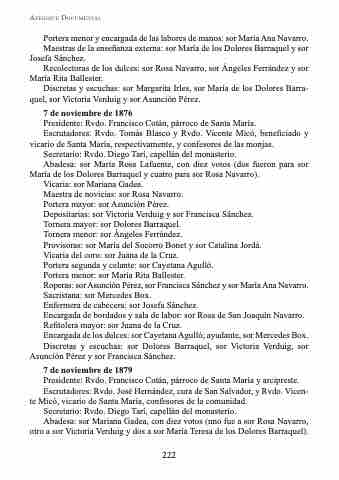Escrutadores: Rvdo. José Hernández, cura de San Salvador, y Rvdo. Vicen- te Micó, vicario de Santa María, confesores de la comunidad.