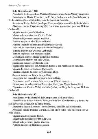 Abadesa: madre Dolores Carbonell, con once votos (uno fue para sor Ce- cilia Vidal).
