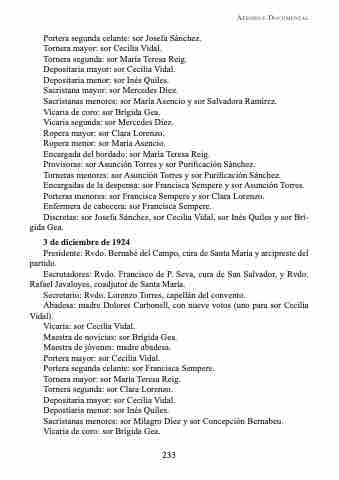 Sacristanas menores: sor María Asencio y sor Salvadora Ramírez. Vicaria de coro: sor Brígida Gea.