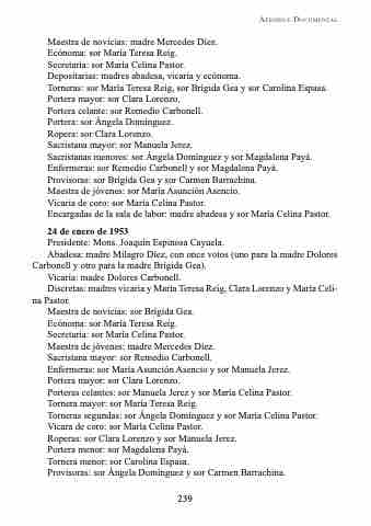 Torneras segundas: sor Ángela Domínguez y sor María Celina Pastor. Vicara de coro: sor María Celina Pastor.