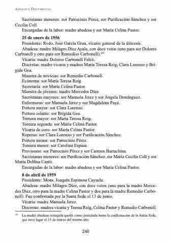 Abadesa: madre Milagro Díez Ayala, con doce votos (uno para sor Dolores Carbonell y otro para sor Remedios Carbonell).261