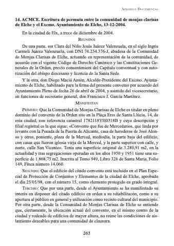14. ACMCE. Escritura de permuta entre la comunidad de monjas clarisas de Elche y el Excmo. Ayuntamiento de Elche, 13-12-2004.