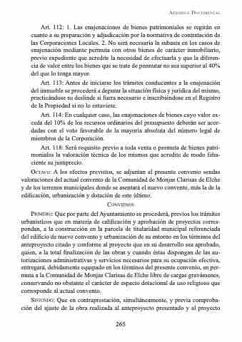 octavo: A los efectos previstos, se adjuntan al presente convenio sendas valoraciones del actual convento de la Comunidad de Monjas Clarisas de Elche y de los terrenos municipales donde se asentará el nuevo convento, más la de la edificación, urbanización y dotación de este último.