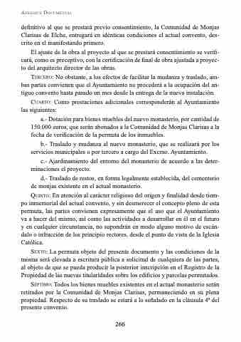 definitivo al que se prestará previo consentimiento, la Comunidad de Monjas Clarisas de Elche, entregará en idénticas condiciones el actual convento, des- crito en el manifestando primero.