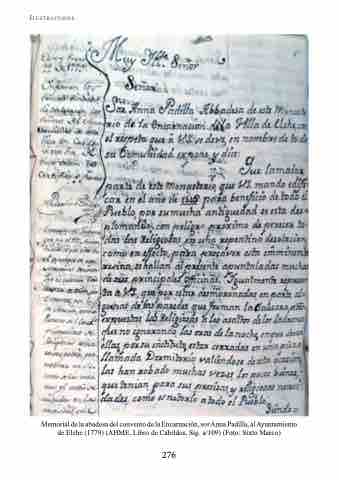 IlustracIones Memorial de la abadesa del convento de la Encarnación, sor Anna Padilla, al Ayuntamiento de Elche (1779) (AHME, Libro de Cabildos, Sig. a/109) (Foto: Sixto Marco) 276