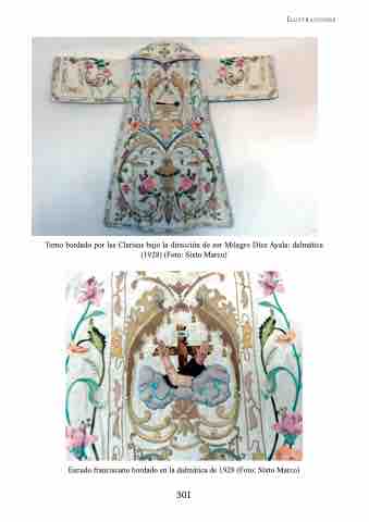 Terno bordado por las Clarisas bajo la dirección de sor Milagro Díez Ayala: dalmática (1928) (Foto: Sixto Marco) Escudo franciscano bordado en la dalmática de 1928 (Foto: Sixto Marco) IlustracIones 301