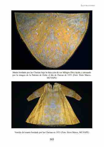 Manto bordado por las Clarisas bajo la dirección de sor Milagro Díez Ayala y estrenado por la imagen de la Patrona de Elche el día de Pascua de 1931 (Foto: Sixto Marco, MUVAPE)