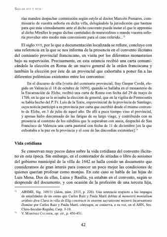 El siglo xvII, por lo que a documentación localizada se refiere, concluye con una referencia en la que se nos informa de la presencia en el convento ilicitano del comisario provincial franciscano, en visita por los diferentes monasterios bajo su supervisión. Precisamente, en esta estancia recibió una carta comuni- cándole la elección en Roma de un nuevo general de la orden franciscana y también la elección por éste de un provincial que exhortaba a poner fin a las diferentes polémicas existentes entre los conventos:
