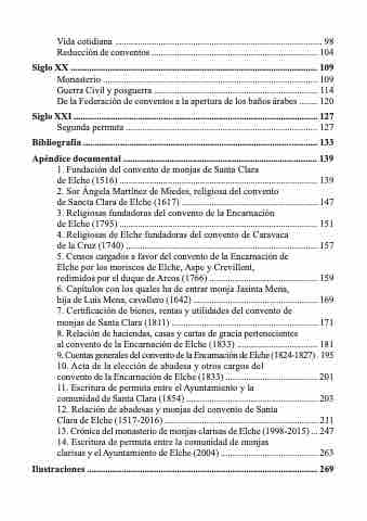 Clara de Elche (1517-2016) .................................................................. 211 13. Crónica del monasterio de monjas clarisas de Elche (1998-2015) ... 247 14. Escritura de permuta entre la comunidad de monjas