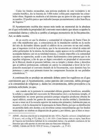 El Ayuntamiento recibía dos meses más tarde un memorial de la abadesa en el que solicitaba la propiedad del convento mercedario que ahora ocupaba la comunidad clarisa y ofrecía a cambio el antiguo monasterio de la Encarnación. Así, se daba cuenta,