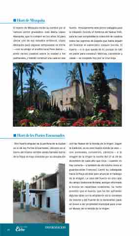 con las fiestas de la Venida de la Virgen. Según la tradición, es en este huerto donde se vela — con serenatas, conciertos, cánticos— a la imagen de la Virgen la noche del 27 al 28 de diciembre de cada año que toca —cuando no hay romería— y también de ahí mismo inicia el guardacostas Francesc Cantó su cabalgada hacia la Plaça de Baix para anunciar el hallazgo de la imagen. La casa del huerto es una casa de campo tradicional ilicitana, aunque reformada a trozos en repetidas ocasiones. Se tiene previsto que el huerto, que ha ido sufriendo algunas talas con la ampliación de la carretera de Dolores y del Puente de la Generalitat, pase en breve a ser propiedad municipal para crear un Museo de la Venida de la Virgen.