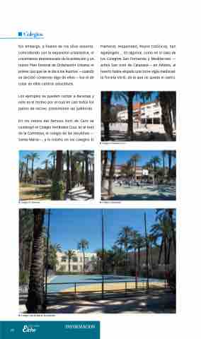 Palmeral, Hispanidad, Reyes Católicos, San Agatángelo... En algunos, como en el caso de los Colegios San Fernando y Mediterrani — antes San José de Calasanz— en Altabix, el huerto había alojado una torre vigía medieval: la Torreta Verdi, de la que no queda ni rastro.