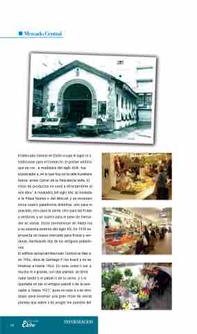 la pescader a, en lo que hoy es la calle Aureliano Ibarra antes Carrer de la Pescateria Vella. El resto de productos se vend a directamente al aire libre.˚ A mediados del siglo XIX, se traslada a la Plaza Nueva o del Mercat y se levantan otros cuatro pabellones distintos: uno para el pescado, otro para la carne, otro para las frutas y verduras, y un cuarto para el peso de merca- der as varias. Estos permanecer an hasta los a os sesenta-setenta del siglo XX. En 1939 se proyecta un nuevo mercado para frutas y ver- duras, derribando dos de los antiguos pabello- nes.
