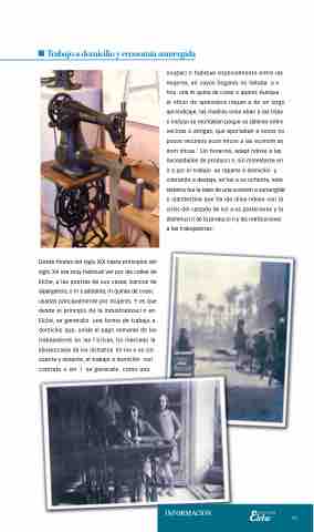 Desde finales del siglo XIX hasta principios del siglo XX era muy habitual ver por las calles de Elche, a las puertas de sus casas, bancos de alpargatero, o m s adelante, m quinas de coser, usadas principalmente por mujeres. Y es que desde el principio de la industrializaci n en Elche, se generaliz una forma de trabajo a domicilio que, unida al pago semanal de los trabajadores en las f bricas, ha marcado la idiosincrasia de los ilicitanos. En los a os cin- cuenta y sesenta, el trabajo a domicilio con contrato o sin l se generaliz como una