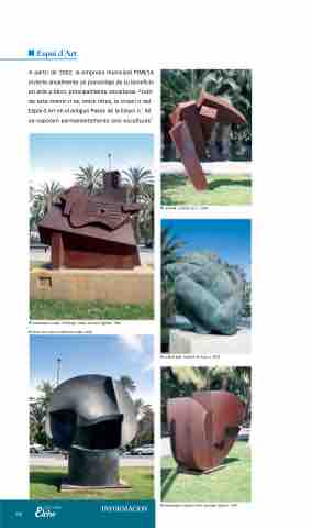 A partir de 2002, la empresa municipal PIMESA invierte anualmente un porcentaje de su beneficio en arte p blico, principalmente esculturas. Fruto de esta inversi n es, entre otras, la creaci n del Espai d Art en el antiguo Paseo de la Estaci n.˚ All se exponen permanentemente seis esculturas˚˚