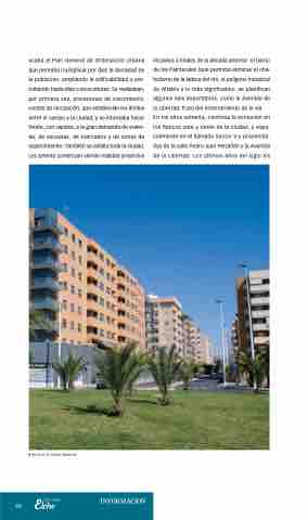 iniciados a finales de la década anterior: el barrio de los Palmerales (que permitía eliminar el cha- bolismo de la ladera del río), el polígono industrial de Altabix y lo más significativo: se planifican algunos ejes importantes, como la Avenida de la Libertad, fruto del enterramiento de la vía. En los años ochenta, continúa la evolución en los flancos este y oeste de la ciudad, y espe- cialmente en el llamado Sector V y proximida- des de la calle Pedro Juan Perpiñán y la Avenida de la Libertad. Los últimos años del siglo XX