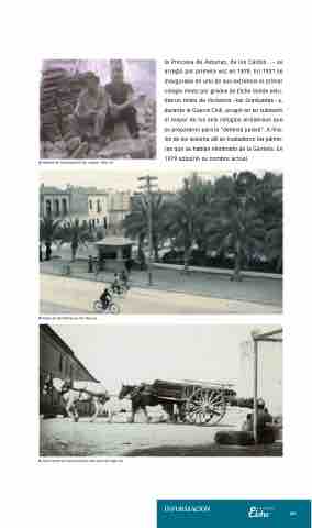 la Princesa de Asturias, de los Caídos...– se arregló por primera vez en 1878. En 1931 se inauguraba en uno de sus extremos el primer colegio mixto por grados de Elche donde estu- diaron miles de ilicitanos –las Graduadas– y, durante la Guerra Civil, acogió en su subsuelo el mayor de los seis refugios antiaéreos que se prepararon para la “defensa pasiva”. A fina- les de los sesenta allí se trasladaron las palme- ras que se habían eliminado de la Glorieta. En 1979 adquirió su nombre actual.