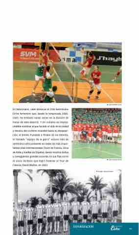 En balonmano, cabe destacar el Club Balonmano Elche femenino que, desde la temporada 2000- 2001, ha militado varias veces en la división de honor de este deporte. Y en ciclismo es impres- cindible nombrar al que ha sido el club de la ciudad y decano del ciclismo mundial hasta su desapari- ción, el Kelme. Fundado a finales de los setenta, el llamado “equipo de la garra” estuvo más de veinticinco años presente en todas las más impor- tantes citas internacionales (Tours de Francia, Giros de Italia y Vueltas de España), dando muchos éxitos y consiguiendo grandes victorias. En sus filas corrió el único ilicitano que logró finalizar el Tour de Francia, David Muñoz, en 2003.