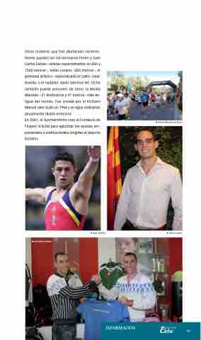 Otros nombres que han destacado reciente- mente pueden ser los hermanos Pedro y Juan Carlos Esteso –atletas especializados en 800 y 1500 metros–; Julián Lozano –200 metros–, el gimnasta artístico –especializado en salto– Isaac Botella, o el nadador Javier Sánchez Bri. Elche también puede presumir de tener la Media Maratón –21 kilómetros y 97 metros– más an- tigua del mundo. Fue creada por el ilicitano Manuel Jaén Guilló en 1964 y se sigue realizando anualmente desde entonces.