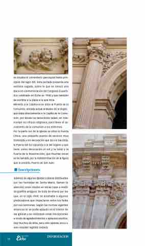 se situaba el cementerio parroquial hasta prin- cipios del siglo XIX. Esta portada presenta una ventana cegada, sobre la que se colocó una placa en conmemoración del Congreso Eucarís- tico celebrado en Elche en 1948 y que también da nombre a la plaza a la que mira.