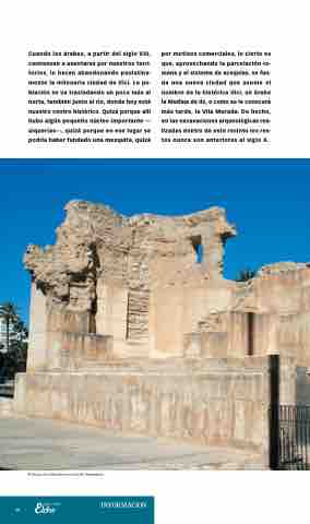 por motivos comerciales, lo cierto es que, aprovechando la parcelación ro- mana y el sistema de acequias, se fun- da una nueva ciudad que asume el nombre de la histórica Ilici, en árabe la Medina de Ils, o como se le conocerá más tarde, la Vila Murada. De hecho, en las excavaciones arqueológicas rea- lizadas dentro de este recinto los res- tos nunca son anteriores al siglo X.