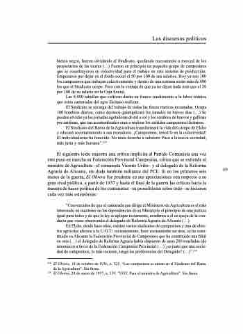 En Elche, desde hace años, existen varios sindicatos de campesinos y uno de obre- ros agrícolas afectos a la U.G.T.: recientemente, hace escasamente un mes, se ha cons- tituido en Alicante la Federación Provincial de Campesinos que ha constituido una filial en esta (...) el delegado de Reforma Agraria había dispuesto de unas 200 toneladas (de amoniaco) a favor de la Federación Campesina Provincial (...) ¿es justo que una socie- dad de campesinos, la más reciente, tenga las preferencias del Delegado? (...)”.239