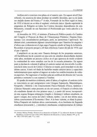 Arriben així a conviure tres plans en el mateix curs. En aquest nivell [bat- xillerat], «la ausencia de ideas produjo un notable desorden, que ya no pudo ser atajado dentro del bienio.»39 A més, Fernando de los Rios signà en març de 1932 el decret on es deia el següent: «Artículo único. Queda suprimida la asignatura de Religión en todos los Centros docentes dependientes de este Ministerio, cesando en sus funciones el Profesorado que venía adscrito a la misma.»40