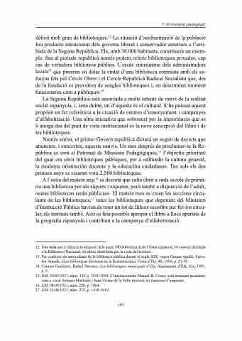 A l’estiu del mateix any,16 es decretà que calia obrir a cada escola de primà- ria una biblioteca per als xiquets i xiquetes, però també a disposició de l’adult, «estas bibliotecas serán públicas». El mateix mes es creen les seccions circu- lants de les biblioteques,17 totes les biblioteques que depenien del Ministeri d’Instrucció Pública havien de tenir un lot de llibres escollits per fer-los circu- lar, als instituts també. Així es feia possible apropar el llibre a llocs apartats de la geografia espanyola i contribuir a la campanya d’alfabetització.