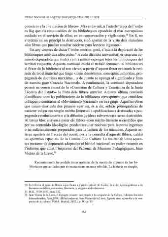 comercio y la circulación de libros». Més endavant, a l’article tercer de l’ordre es llig que els responsables de les biblioteques «pondrán el más escrupuloso cuidado en el servicio de ellos, en su conservación y vigilancia».50 En fi, no s’ordena en un principi la destrucció, sinó apartar de la vista dels ciutadans «los libros que puedan resultar nocivos para lectores ingenuos».
