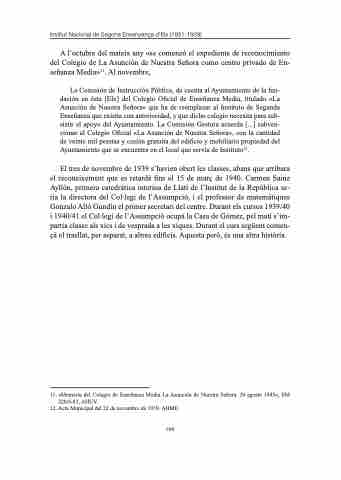 A l’octubre del mateix any «se comenzó el expediente de reconocimiento del Colegio de La Asunción de Nuestra Señora como centro privado de En- señanza Media»11. Al novembre,