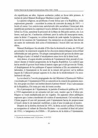 La revolució a l’escola propugnada des del Ministeri d’Instrucció Pública i recolzada per l’Ajuntament d’Elx es concretà en la creació de quaranta esco- les, tres grups escolars i un institut durant el primer bienni5. Fins l’adveniment de la República, Elx tenia poc més de trenta escoles.