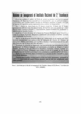 Foto 1. Activitats per al dia de la inauguració de l’Institut. Anunci d’El Obrero, 7 de febrer de 1932. (AHME) 251