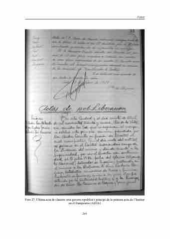 Fotos Foto 27. Última acta de claustre sota govern republicà i principi de la primera acta de l’Institut en el franquisme.(AIJJA) 269