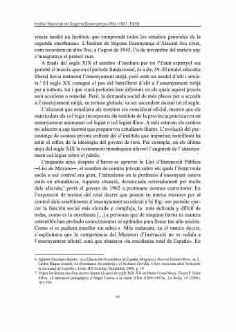 A finals del segle XIX el nombre d’instituts per tot l’Estat espanyol era gairebé el mateix que en el període fundacional, és a dir, 59. El model educatiu liberal havia instaurat l’ensenyament mitjà, però amb un model d’elit i sexis- ta.6 El segle XX conegué el pas del batxillerat d’elit a l’ensenyament mitjà per a tothom, tot i que viurà períodes ben diferents en els quals aquest procés serà accelerat o retardat. Però, la demanda social de més places per a accedir a l’ensenyament mitjà, en termes globals, va ser ascendent durant tot el segle.