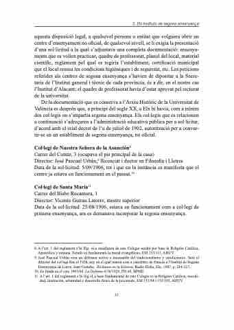 De la documentació que es conserva a l’Arxiu Històric de la Universitat de València es desprén que, a principi del segle XX, a Elx hi havia, com a mínim dos col·legis on s’impartia segona ensenyança. Els col·legis que es relacionen a continuació s’adreçaren a l’administració educativa pública per a sol·licitar, d’acord amb el reial decret de l’u de juliol de 1902, autorització per a conver- tir-se en un establiment de segona ensenyança, no oficial.