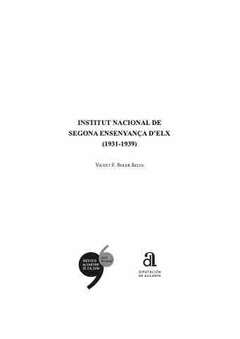 INSTITUT NACIONAL DE SEGONA ENSENYANÇA D’ELX (1931-1939) Vicent F. Soler SelVa