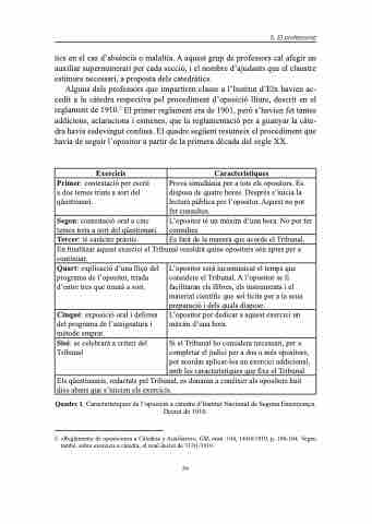 Quadre 1. Característiques de l’oposició a càtedra d’Institut Nacional de Segona Ensenyança. Decret de 1910.