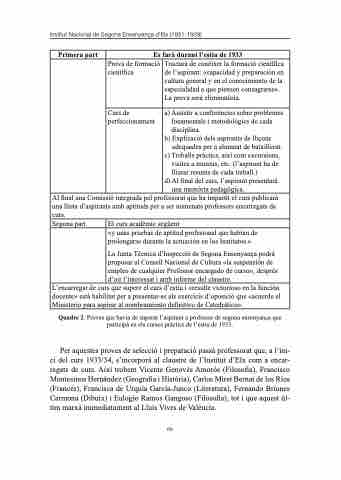 Quadre 2. Proves que havia de superar l’aspirant a professor de segona ensenyança que participà en els cursos pràctics de l’estiu de 1933.