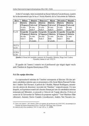 Quadre 3. Horari del catedràtic numerari de Geografia i Historia, Diego José Cordero González, durant el curs 1932/33.