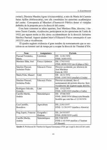 Quadre 4. Professorat de l’Institut de Segona Ensenyança d’Elx que ocupà la direcció del centre. 69