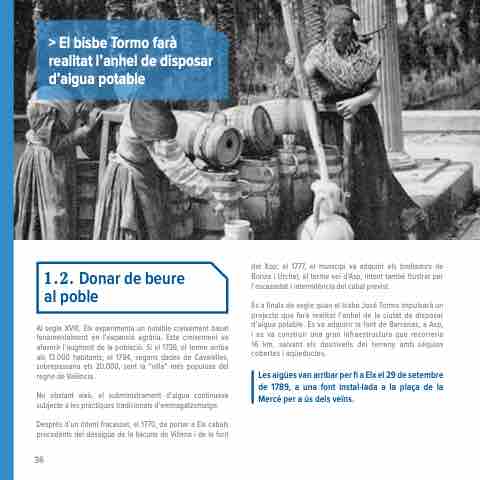 És a finals de segle quan el bisbe José Tormo impulsarà un projecte que farà realitat l’anhel de la ciutat de disposar d’aigua potable. Es va adquirir la font de Barrenas, a Asp, i es va construir una gran infraestructura que recorreria 16 km, salvant els desnivells del terreny amb séquies cobertes i aqüeductes.